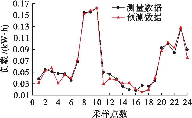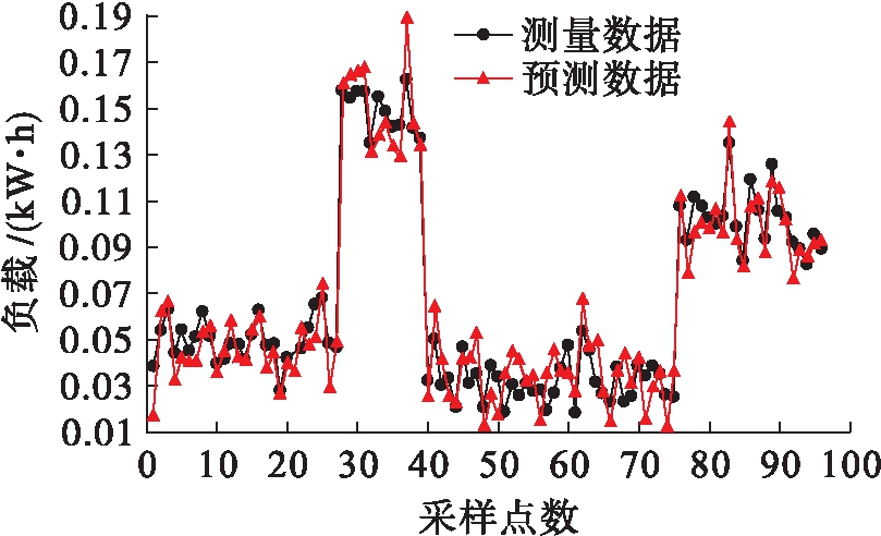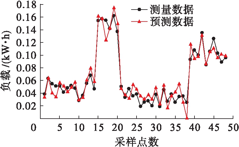 智能电表的通信能力使实时测量数据的获取成为可能,为评价所提出的预测方法在不同采样周期和预测水平下的性能提供了机会.除了15 min的采样周期外,还需考虑更大的30 min和1 h采样周期.图3、4分别展示了30 min和1 h采样周期的住宅测量负载与预测负载对比情况.