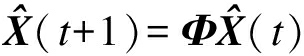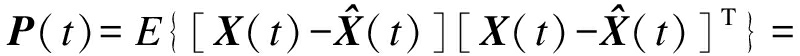 式中,Φ、A为状态转换关系矩阵.噪声变量V1(t)与V2(t)是独立的零均值高斯噪声及其协方差矩阵,进一步可得