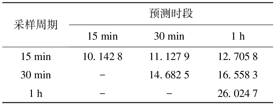采样周期预测时段15min30min1h15min10.142811.127912.705830min-14.682516.55831h--26.0247