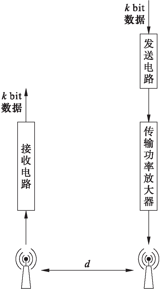 为了构建异构无线传感器网络的能耗模型,以无线电一阶模型为依据[4-5]分析模型的能耗,模型具体构成如图1所示.