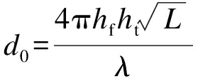 式中:hf为无线电信号被天线接收的最大距离;ht为天线高度;λ为无线电信号的实际波长;L为发送能量消耗.