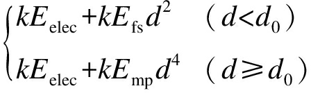 当无线电信号经过距离d比临界值d0小时,需要利用自由空间模型,此时对数据信号进行传输所消耗的能量和d的平方存在正比关系;当d比临界值d0大时,需要利用多路径衰落模型,数据信号传输所消耗的能量和d的四次方存在正比关系[6].临界值d0的计算表达式为
