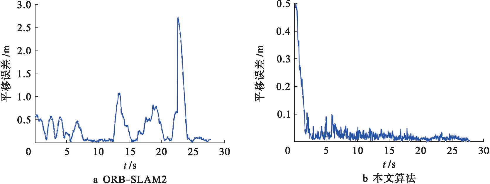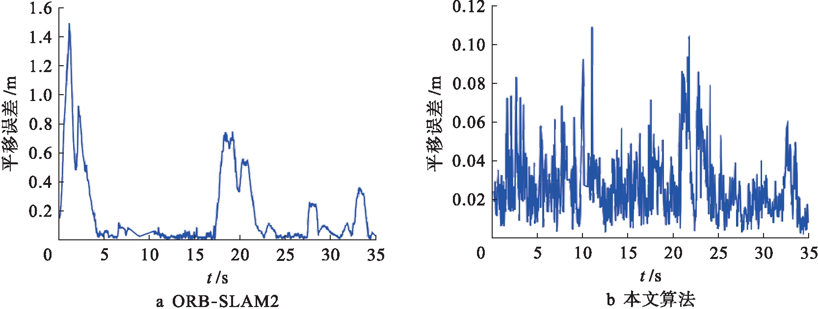 图6 两种算法在fr3/w/xyz序列上的RPE图