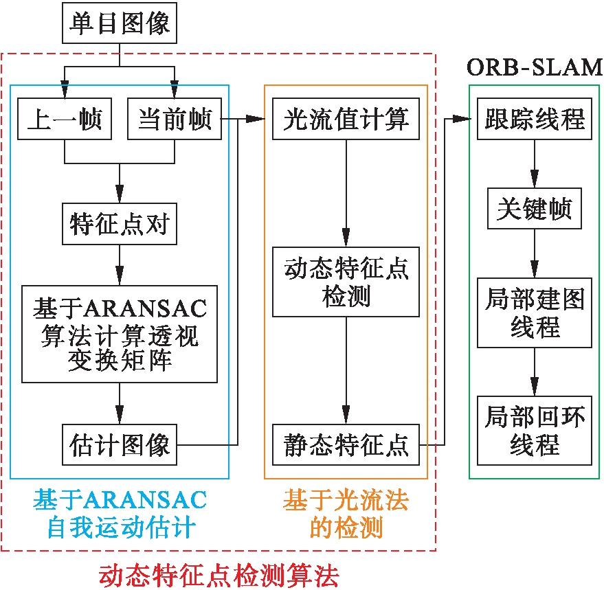 Fig.1 Framework of monocular vision SLAM algorithm based on dynamic feature point elimination