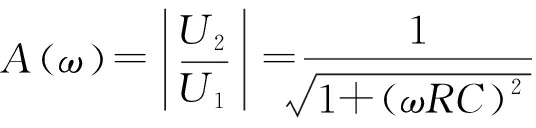 当信号源频率ω→0时,A(ω)=1,信号不受衰减地通过;当频率ω较大时,A(ω)=0,信号完全被阻挡,不能通过.即该电路可通过低频信号抑制高频信号,具有低通滤波的作用.