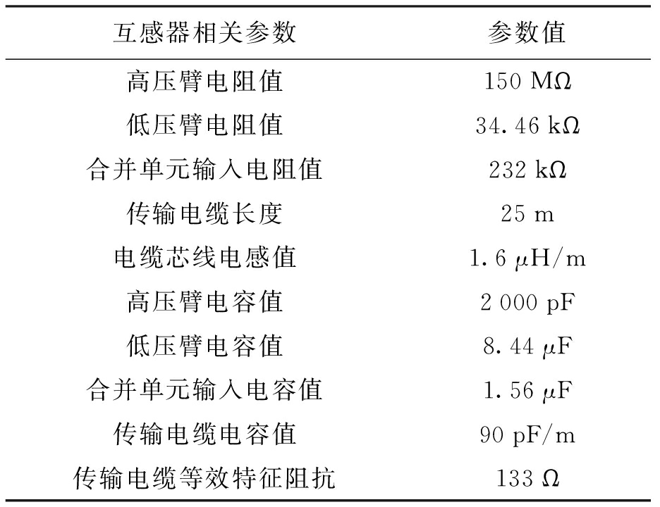 互感器相关参数参数值高压臂电阻值150MΩ低压臂电阻值34.46kΩ合并单元输入电阻值232kΩ传输电缆长度25m电缆芯线电感值1.6μH/m高压臂电容值2000pF低压臂电容值8.44μF合并单元输入电容值1.56μF传输电缆电容值90pF/m传输电缆等效特征阻抗133Ω