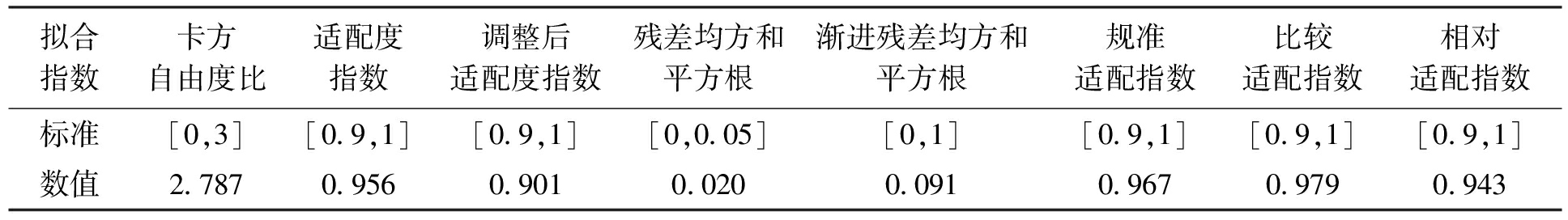 (2) 模型整体拟合度检验。对模型拟合度进行检验,结果如表11所示。