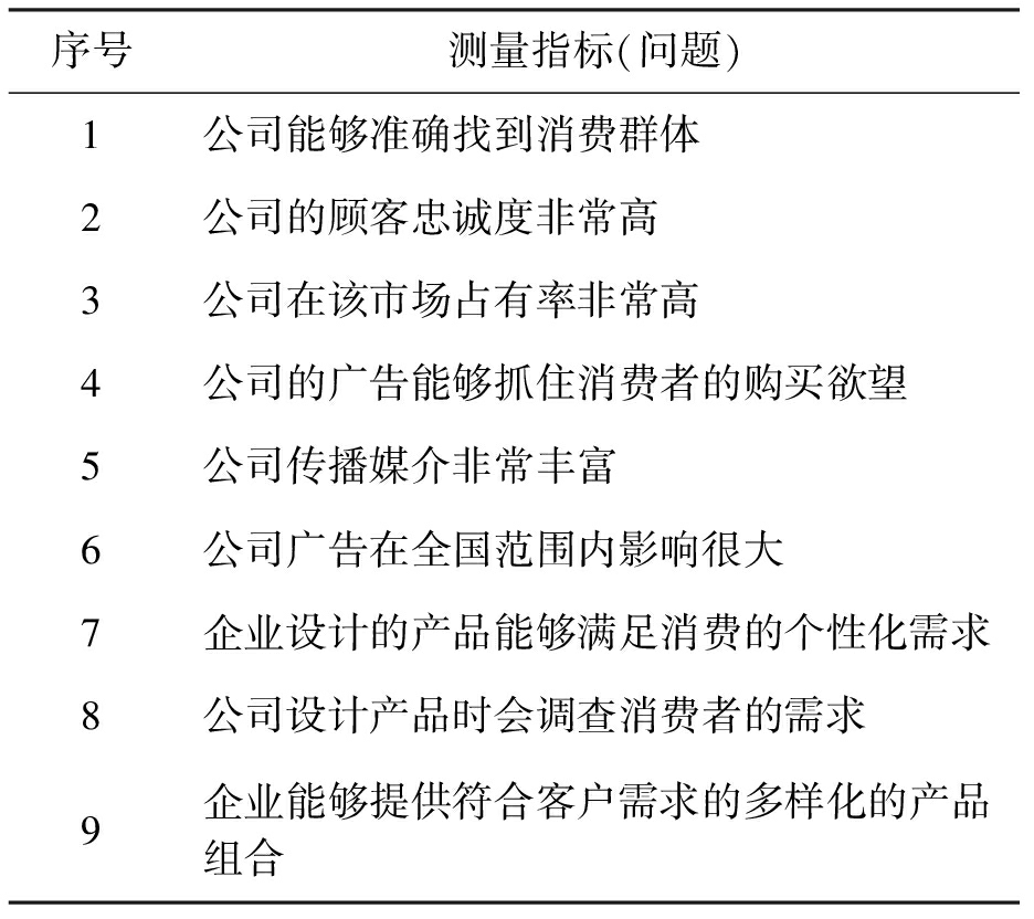 本文所使用的精准营销量表借鉴Jeff和Gresh开发的量表,并根据研究对象进行适当的删减与修改,从精准广告投放、目标市场定位和个性化需求满足方面进行调查问卷的设计。问卷包括9个题目,全为正向题目,采用Likert五点量表计分,分数愈高代表企业实施精准营销效果愈好,具体如表2所示。