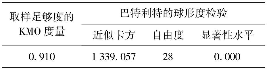 对量表进行效度检验,结果如表5、6所示。由表5可知,量表的KMO值为0.910,所以量表适合作因子分析。由表6可知,所有变量在第一个因子上的载荷均大于0.7,说明测量结果与测量内容吻合,表明量表结构效度较好。
