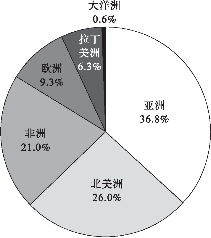 目前安徽省对外投资已覆盖了全球6大洲,对外投资合作企业遍布全球137个国家和地区。无论从投资境外企业数量还是从投资金额上看,亚洲始终居于第一位,其次是北美洲,非洲排第三位(见图5、6)。在亚洲,安徽省投资境外企业主要分布在中国香港和日本,占比分别约为41%和7%,而投资金额占比最大的是中国香港和印尼,分别为34.8%和4.8%;在北美洲,安徽省投资境外企业主要分布在美国,占比为83%,而投资金额占比最大的是加拿大,达到22%;在非洲,安徽省投资境外企业主要分布在赞比亚和尼日尼亚,分别为16%和12%,而投资金额占比最大的是津巴布韦,为19%。值得一提的是,从安徽省企业海外投资年度流量中可以看出,对亚洲特别是对中国香港和印尼的投资呈现逐年增长的态势,对北美洲、欧洲的投资基本保持平衡,对非洲特别是津巴布韦、莫桑比克的投资呈下降趋势,对拉丁美洲特别是巴西的投资下降明显。