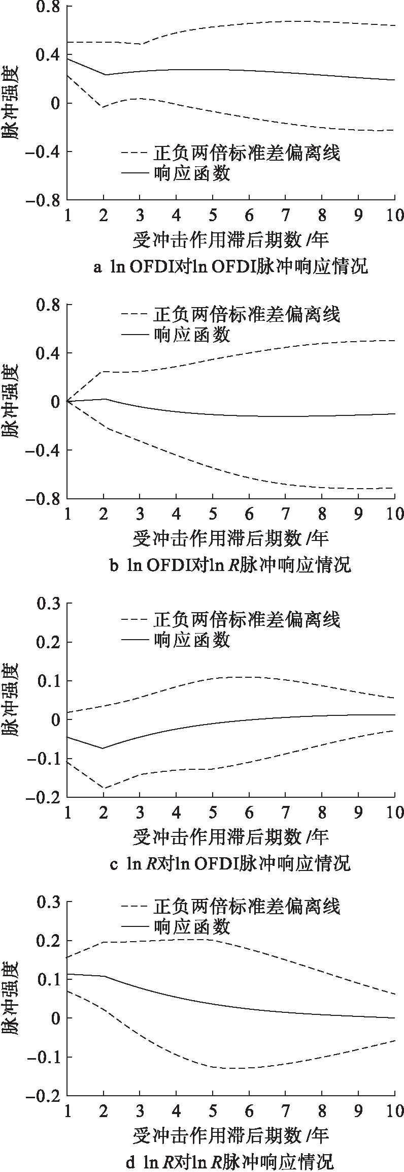 图10 ln OFDI和ln R的脉冲响应情况