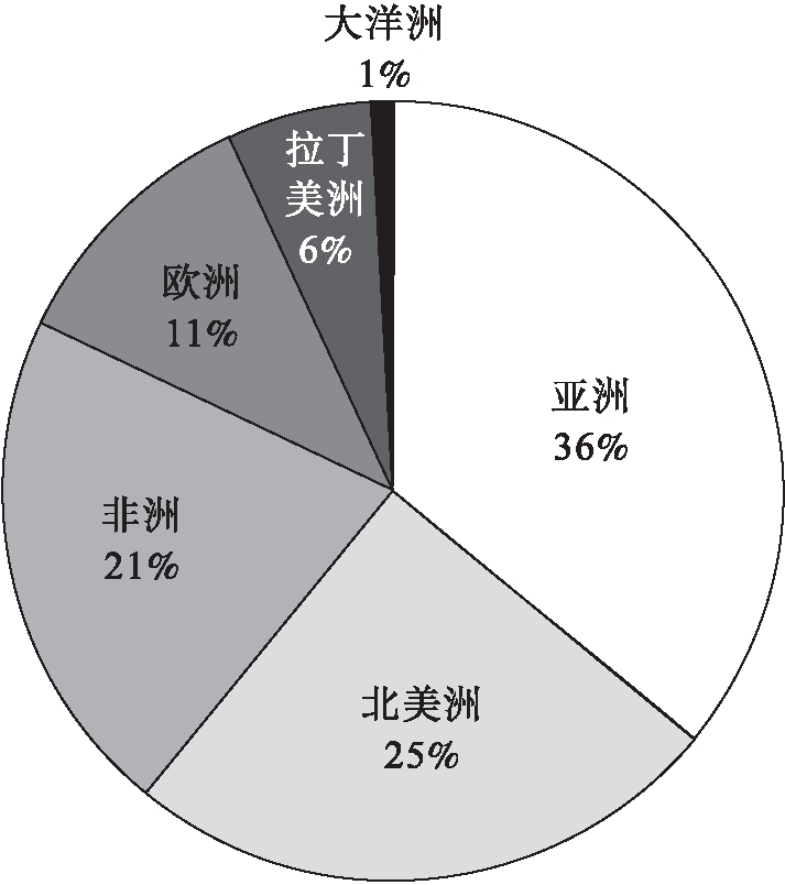 图5 安徽省投资境外企业地域分布