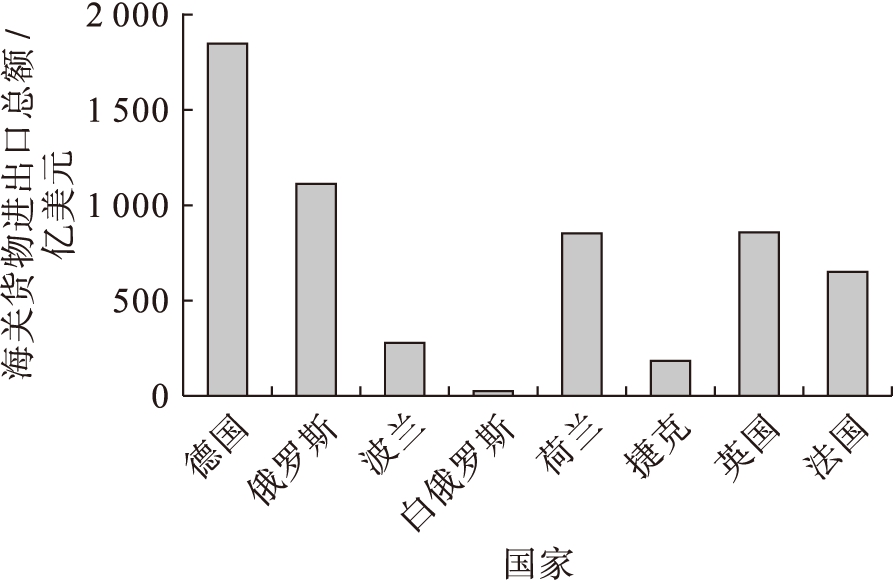 2017年,中国、白俄罗斯、德国、哈萨克斯坦、蒙古、波兰、俄罗斯七国铁路部门签署了立足于服务“一带一路”倡议的《关于深化中欧班列合作协议》。该项协定旨在稳步增加和不断扩大亚欧地区国际铁路的市场份额,深化沿线和周边国家之间的经贸合作[7]。该协议签署以后,中国与签署协议的其余六国通过中欧班列运输开展的贸易越来越密切。其中,白俄罗斯、俄罗斯、德国、波兰属于中东欧国家,而西欧的英国和法国并不在签署协议行列,在一定程度上导致了中欧班列贸易对象的不均衡。