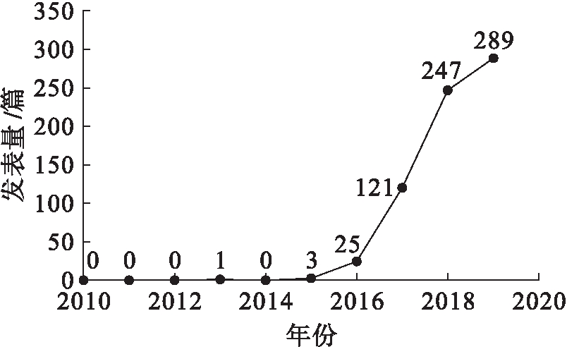 在中国知网以“人工智能产业”为主题,来源选择“全部期刊”,检索得到本研究所需数据。因2010年以来人工智能产业迅猛发展,针对人工智能产业的科研成果也开始大量涌现,因而检索跨度设为2010—2019年,检索时间为2020年5月11日。为保证研究成果的准确性、可靠性和权威性,对会议综述、书评及相关度较低的文献予以筛选、剔除,文献来源仅限于期刊。经过处理最终得到有效期刊文献686篇,以此作为我国人工智能产业研究的样本数据。