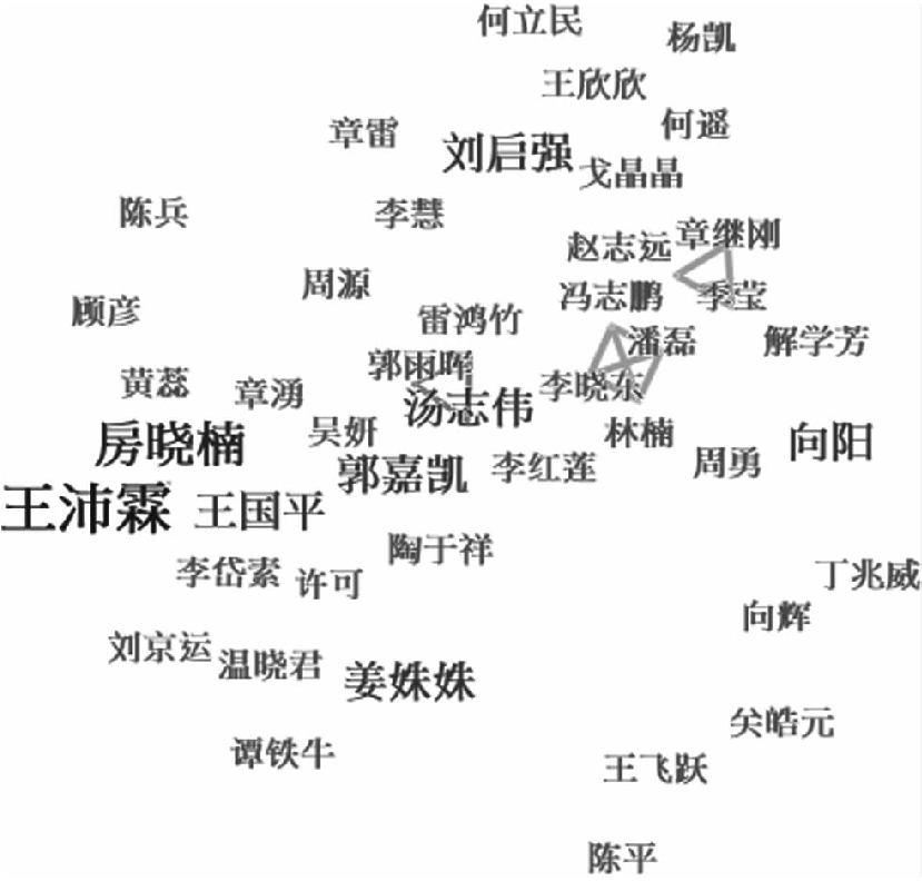 图2显示了核心作者及其合作关系,可以看出该领域里的核心作者以刘启强、房晓楠、王沛霖、汤志伟、郭嘉凯、王国平、向阳和姜姝姝等为代表,但这些作者之间合作甚少,中心性较差,关联性低且分布格局较为分散,尚未形成合作密切的研究团队。因而,在这一领域还需加强持续性研究和合作,逐步形成稳固且联系密切的核心作者群。